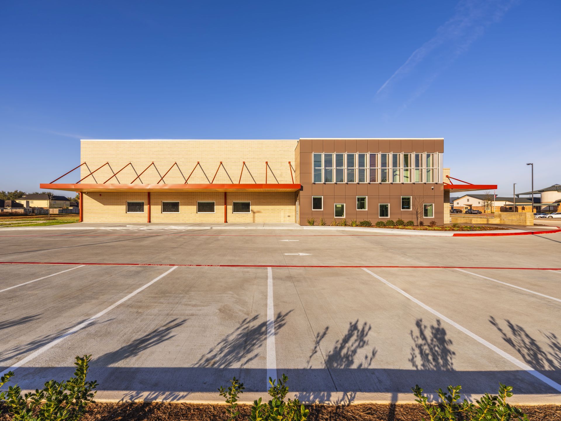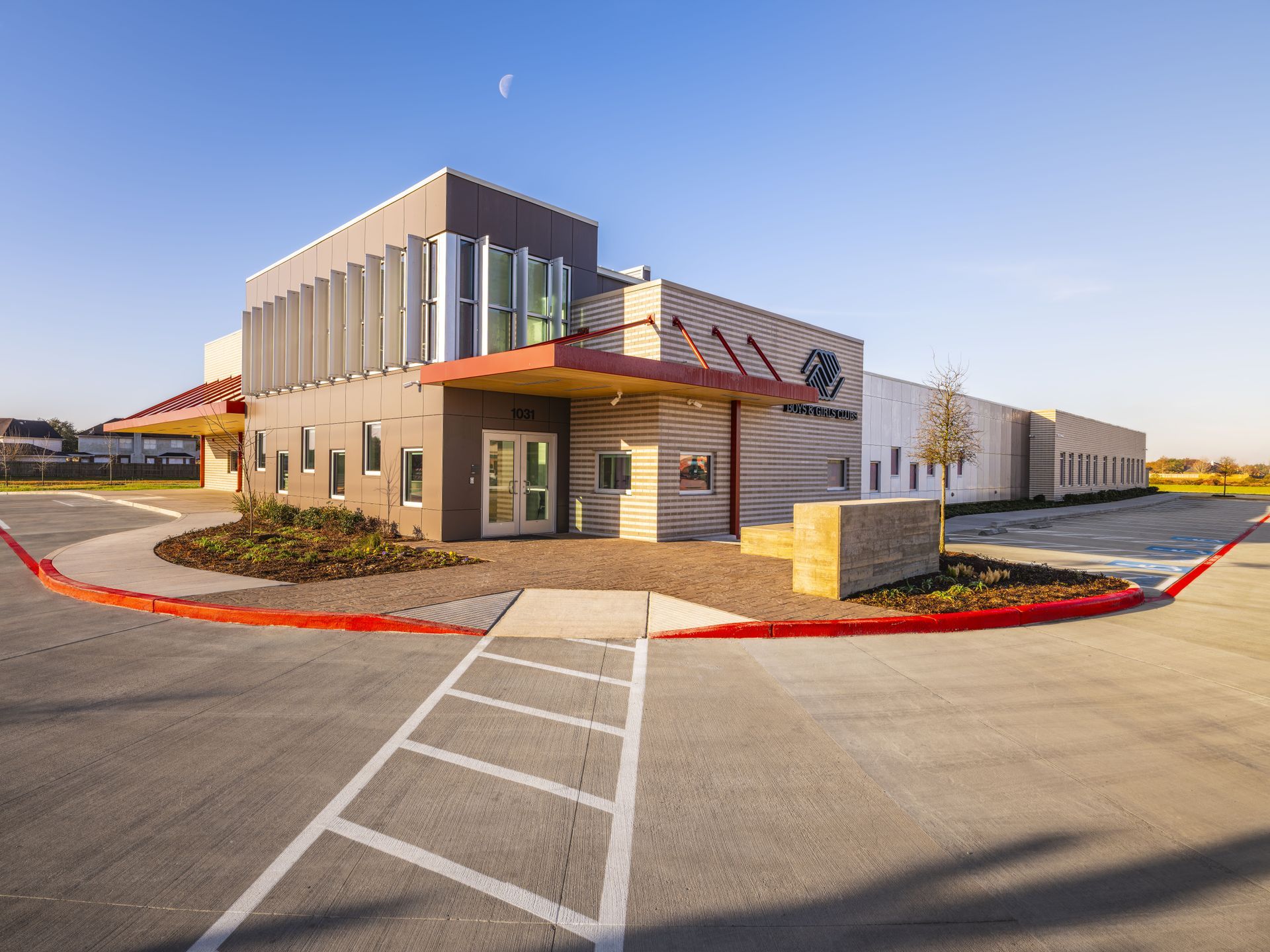 Fort Bend County partnered with the Boys & Girls Club to develop a new community center serving the growing Fresno community. The Fresno Boys & Girls Club is a 22,000-square-foot recreational facility designed to provide a safe and engaging environment for youth of all ages. The center includes a full gymnasium, game room, learning center, craft and computer rooms, a dedicated teen space, and a kids café, offering a wide range of programs that support education, recreation, and personal development. The building features a contemporary exterior composed of brick, metal panels, and expansive glass elements, creating a welcoming and modern community landmark.