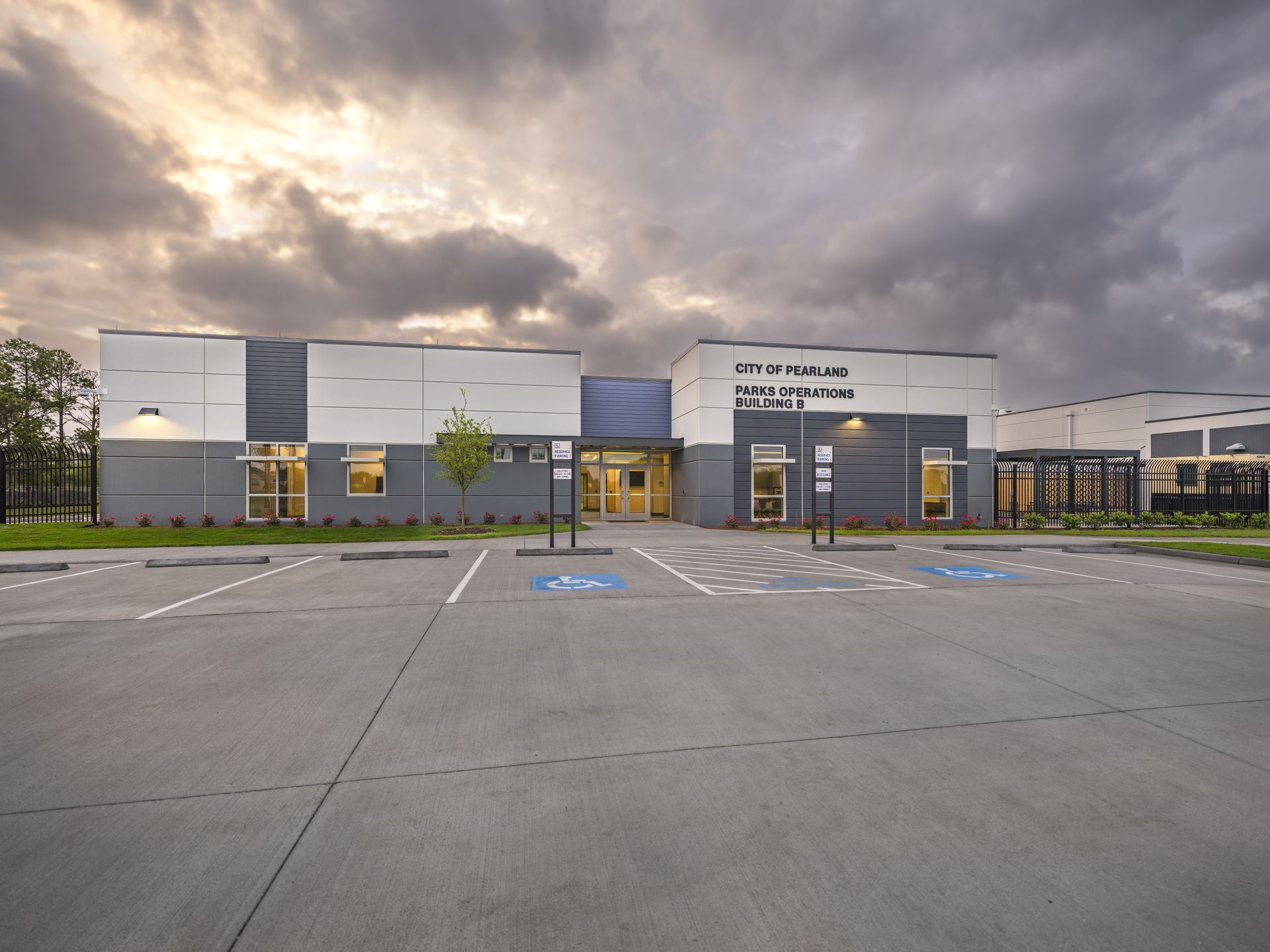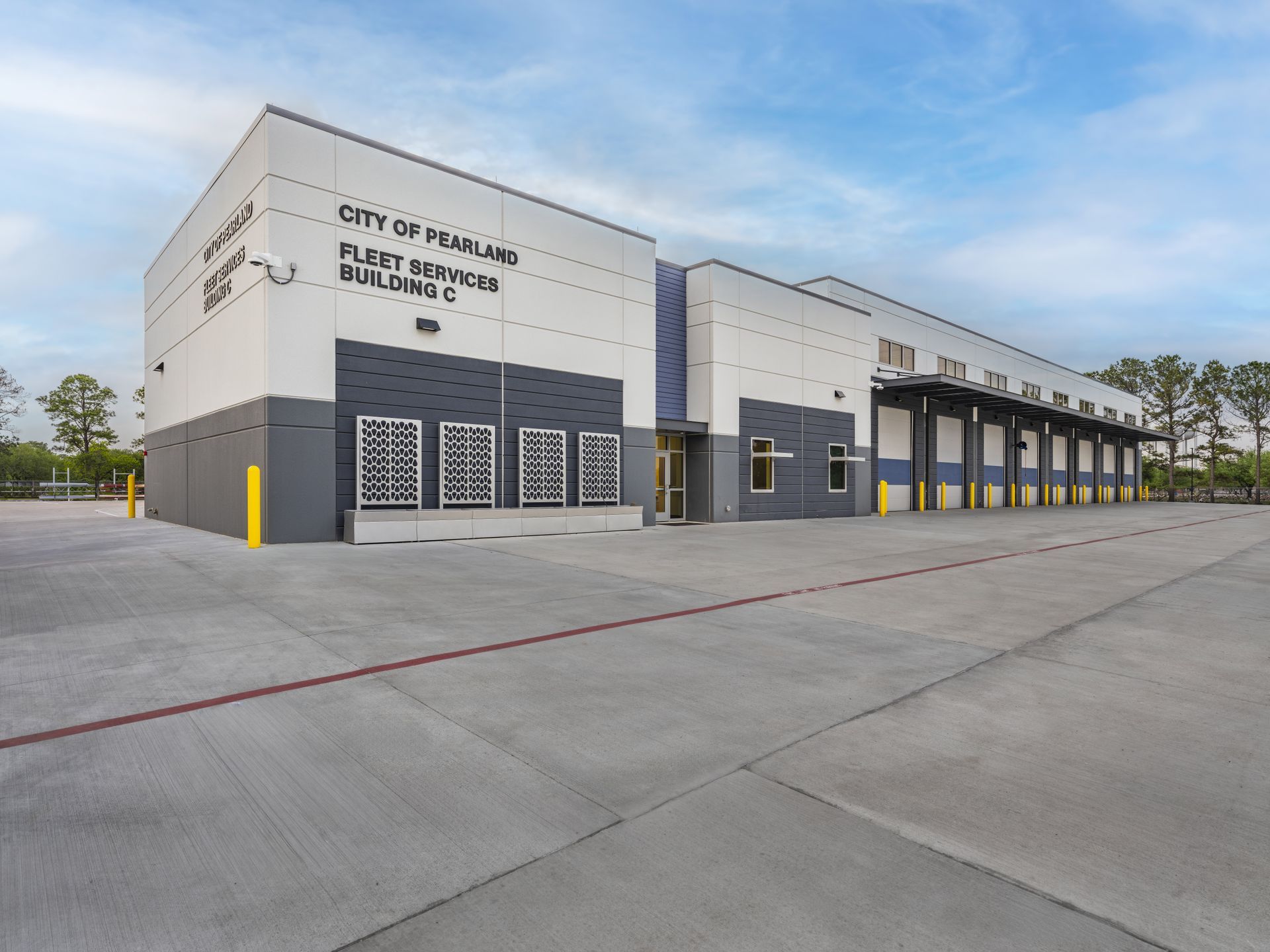 The Hillhouse Road Service Center project represents a significant expansion of the City of Pearland’s existing operations, maintenance, and parks facilities. Designed to support the city’s growing infrastructure needs, the project includes two tilt-wall buildings dedicated to Parks Operations and Fleet Services. The Fleet Services facility features 15 service bays, including specialized compressor and lubrication bays, along with parts storage, locker rooms, office space, and supporting auxiliary areas. The Parks Operations building includes four service bays, parts and chemical storage, and a dedicated office wing with multiple offices, a locker room, break room, and conference space.