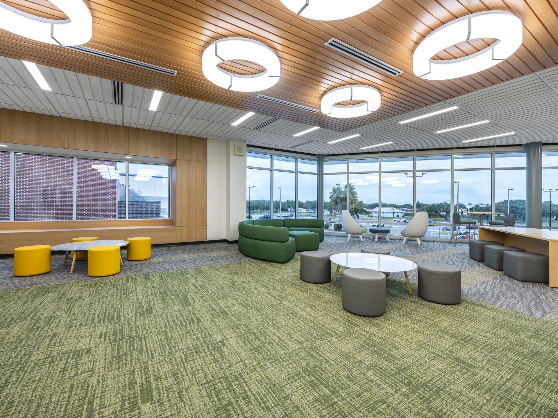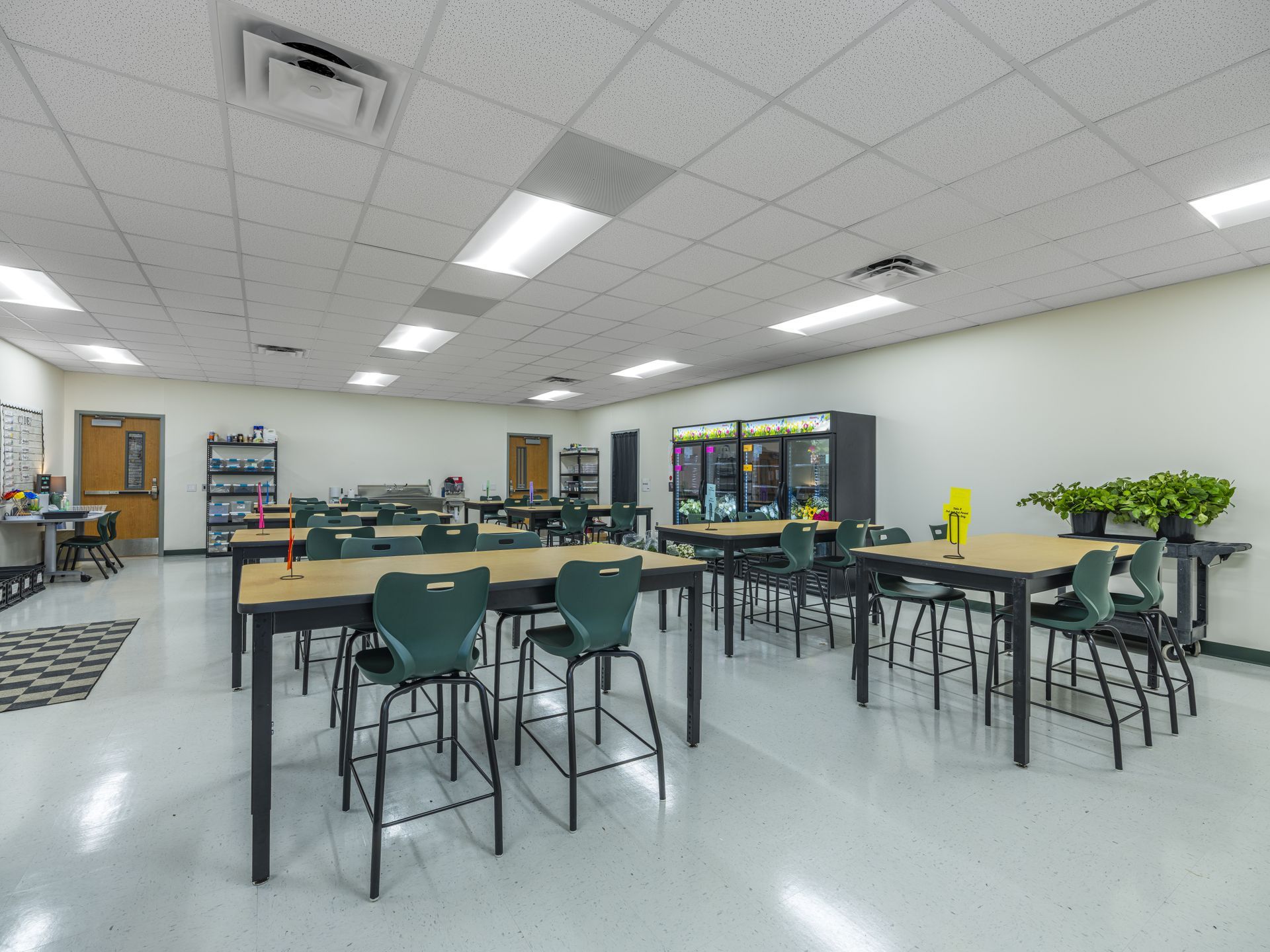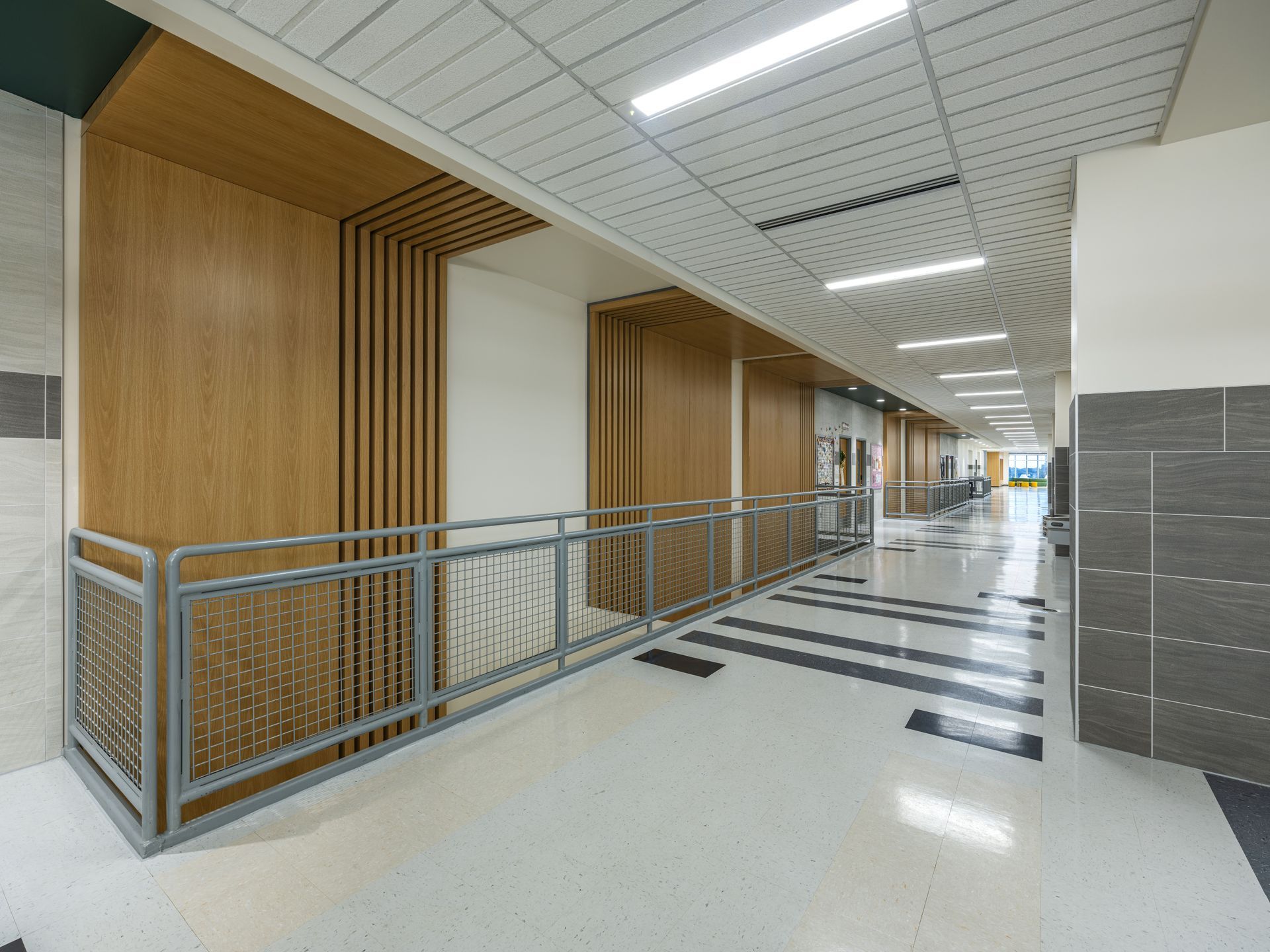 The scope included new classroom and fine arts additions that expand instructional capacity and provide updated environments for student programs. A new main entry strengthens campus identity and security, while improved campus connectivity — including integration with the existing gymnasium — creates a more unified and accessible layout.